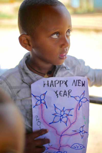 In fact, this is an Ethiopian version of New Year's greeting-card culture. When children give their flower paintings to their relatives and neighbors, they get a little bit of pocket money and sweets in return.