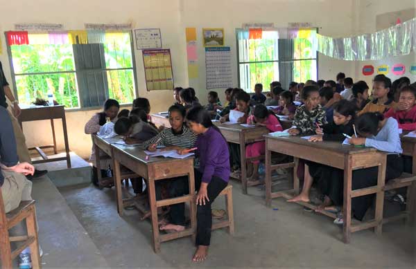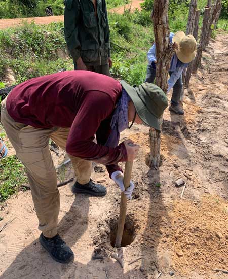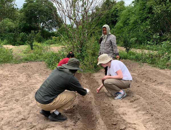 Rachel Warkentin, another intern from HOPE Canada and I spent a total of 25 days in the Pursat province staying in schools in different villages each week. The first week, we stayed at Ream Rey primary school in Ream Rey village. Our main job was to help families and schools by working in the fields, teaching English, and interacting with children. During our time in Ream Rey village, we had a chance to visit many of the well using families, and everyone welcomed us in with a warm smile. When growing crops together, Siem Peun, a mother of the family, told us how happy they were with the clean water that helps them grow many types of crops. She says that they can now eat as many meals, snacks, fruits as they want per day without having to worry about food shortages.