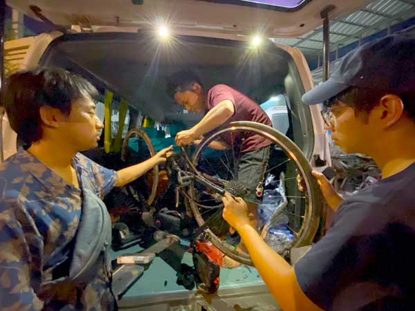 We also ran into problems such as bicycle tire punctures and breakdowns of our support car, but these experiences led to a deepening of our relationships with each other, as we struggled to survive together day after day.