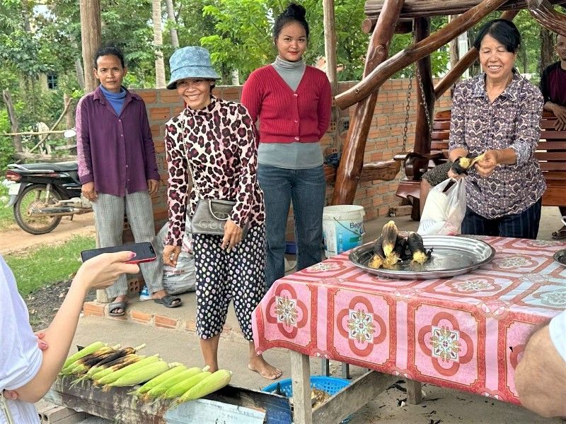 From the women who were part of the Self-Help Groups, I learned about their aspirations and the strength of Cambodians as farmers. A Self-Help Group is part of a micro-finance program in which members receive a small loan from HOPE Cambodia and work together to strengthen their individual economic independence. The group does a variety of things, such as making rice flour noodles using the water from the well that HOPE built, operating small market stalls, and selling roasted corn. They have the skills to grow and process crops, and HOPE supports them financially. It is a form of support that takes advantage of the assets and skills that they already have to promote self-reliance. I saw firsthand the importance of doing what we can with what we have, rather than just giving what we don't have.