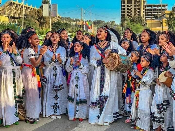 In late August, you can see groups of women dancing and playing drums all over the streets of Addis Ababa. Ashenda is a traditional event celebrated in the Tigray Region in northern Ethiopia. It is held between August 16th and the 26th to honor the arrival of the Virgin Mary to Ethiopia and to pray for the prosperity of her descendants. Many women get dressed in traditional attire with their customary northern braids. In Addis Ababa, I saw groups of women marching through the streets beating small drums, surrounding people they met (especially men) to receive cash gifts for the New Year's celebrations. This year was especially exciting as it was the first Ashenda since the end of the Tigray conflict in northern Ethiopia.