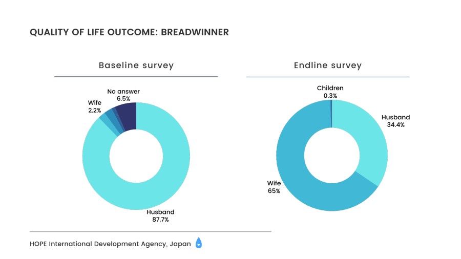 Moreover, as women's incomes improved household finances, there was a noticeable change in men's attitudes. Initially, some men were hesitant about women leaving home for training or business activities, but as they experienced the benefits of improved household income, they began to support women's income-generating activities by taking on responsibilities such as water fetching, household chores, and childcare themselves. Surveys revealed that after the project began, women gained the ability to decide on expenses such as food and education, and they could now speak up alongside men in the community without facing discrimination.